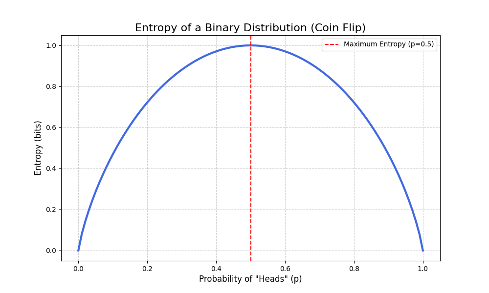 - Measure of Uncertainty: It quantifies the uncertainty or randomness of a random variable. A distribution with high entropy is highly unpredictable, while one with low entropy is more deterministic.